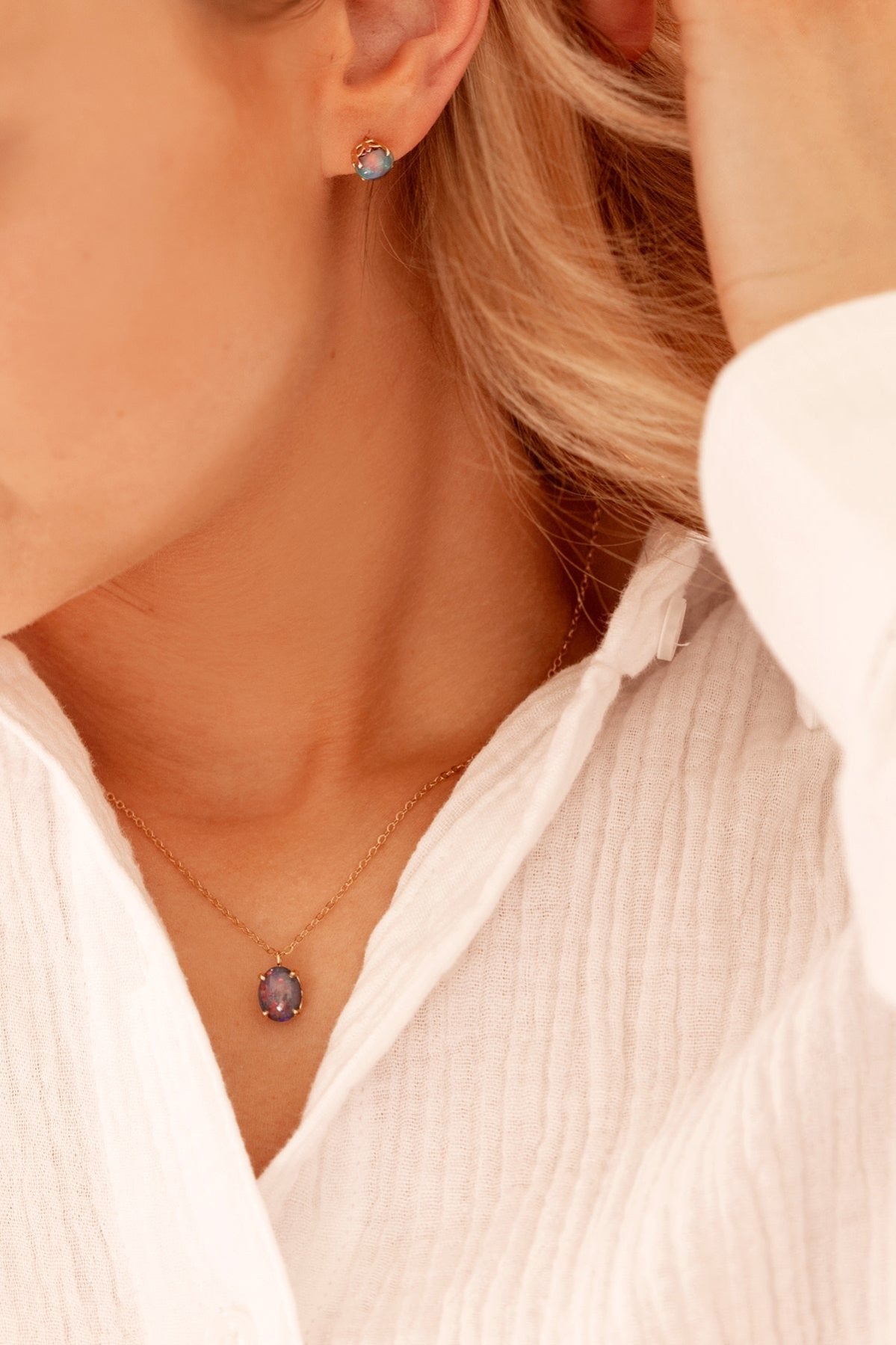 Ethiopian Opal in Solid 14k yellow Gold Pendant and Earrings
