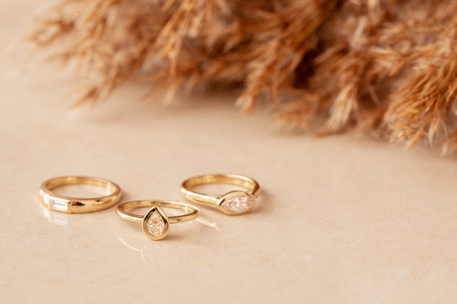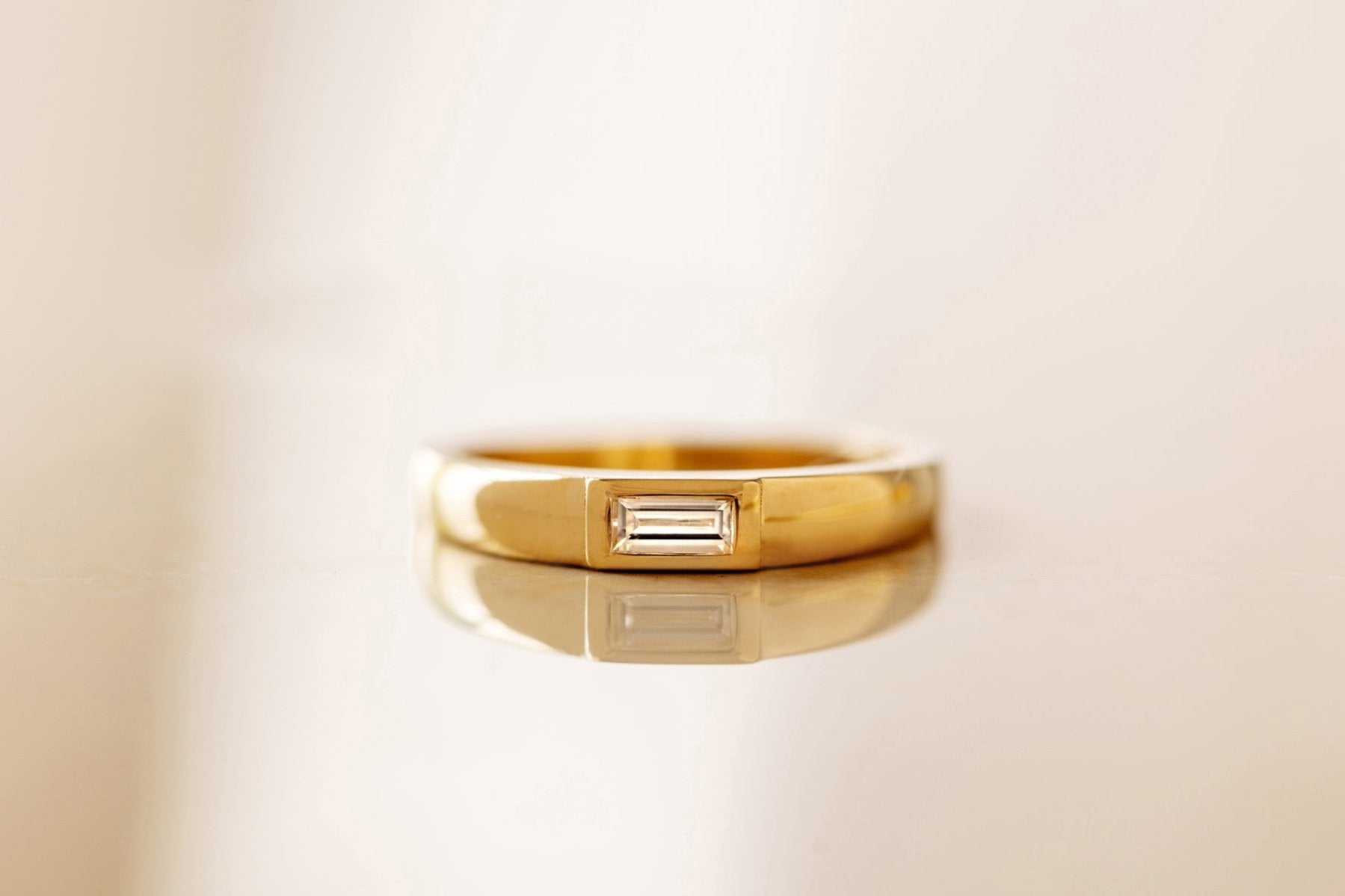 Baguette-cut Natural Diamond Bezel set Gold Engagement Ring