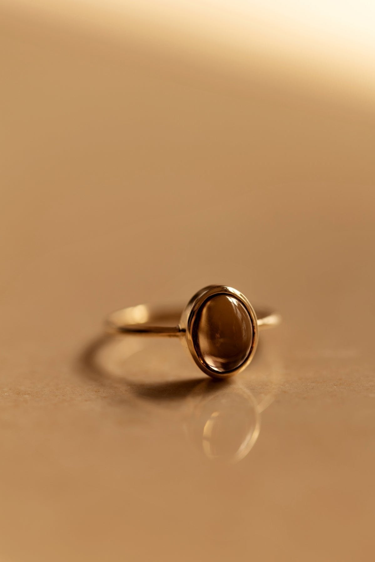 The oval shape of the sapphire is beautifully complemented by the smooth, polished bezel setting, which not only enhances the stone's natural beauty but also provides a secure and sophisticated frame. The warm tones of the 10K yellow gold add a touch of timeless elegance, making this ring a perfect accessory for both everyday wear and special occasions.