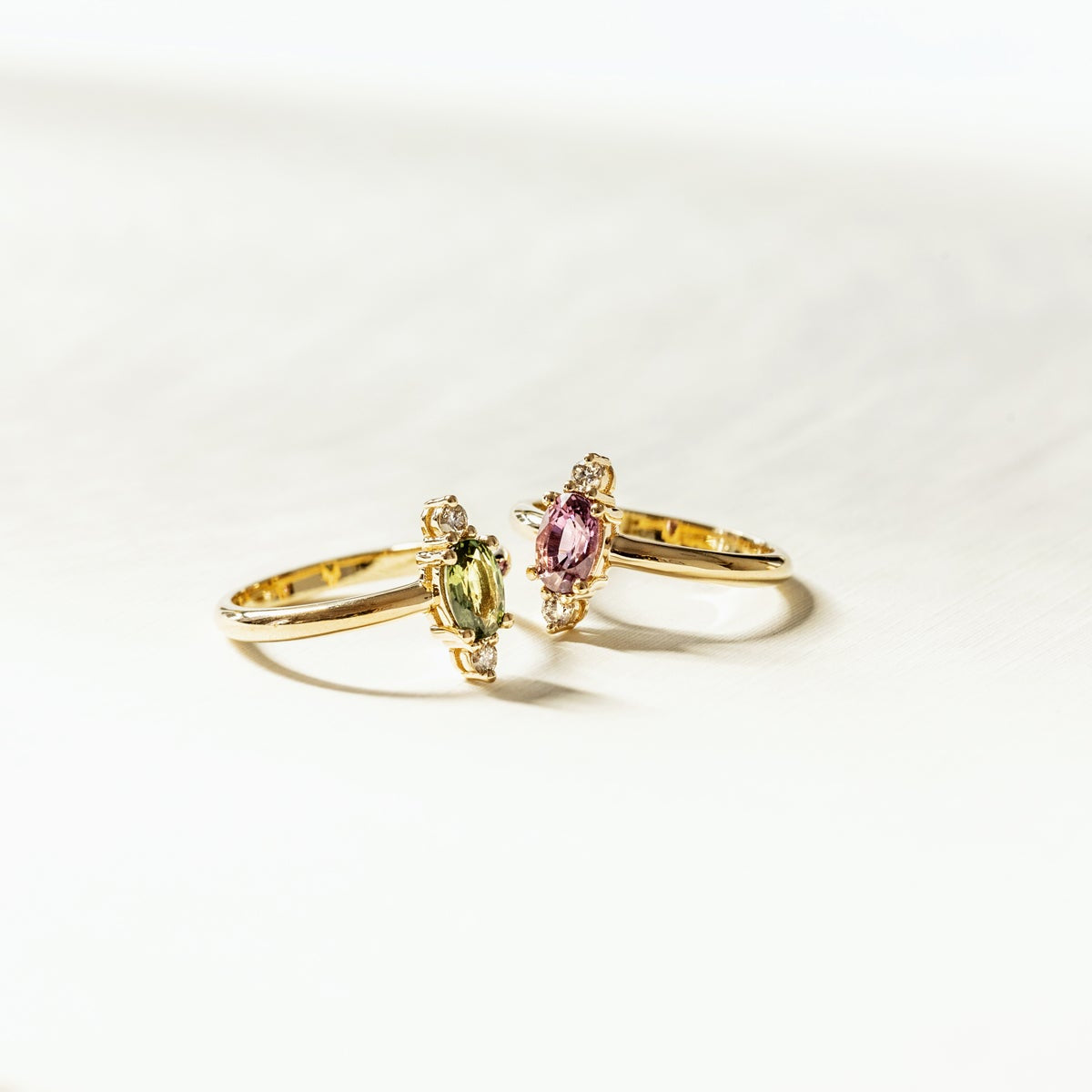 Custom natural Light-green Sapphire and RBC diamonds solid gold Ring