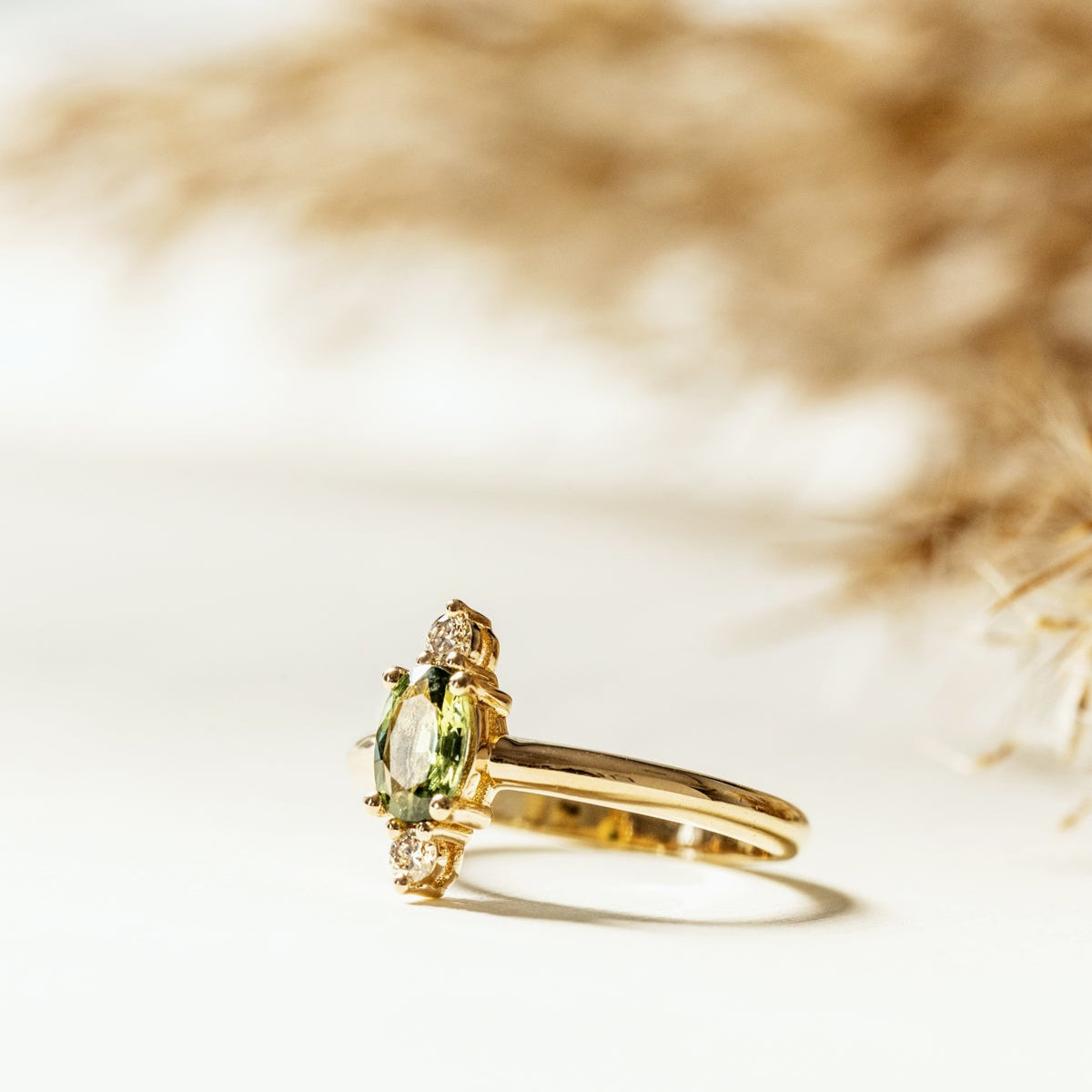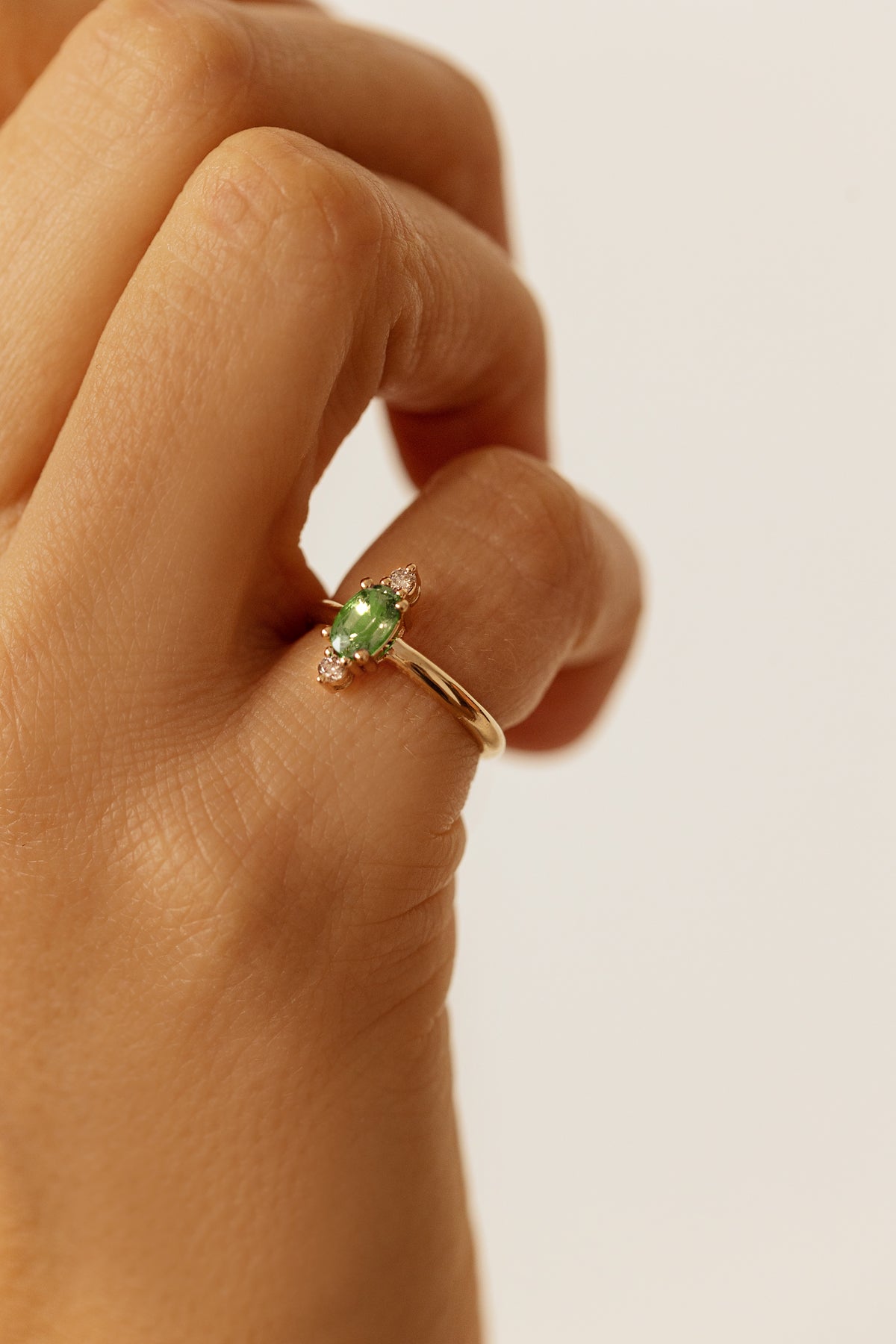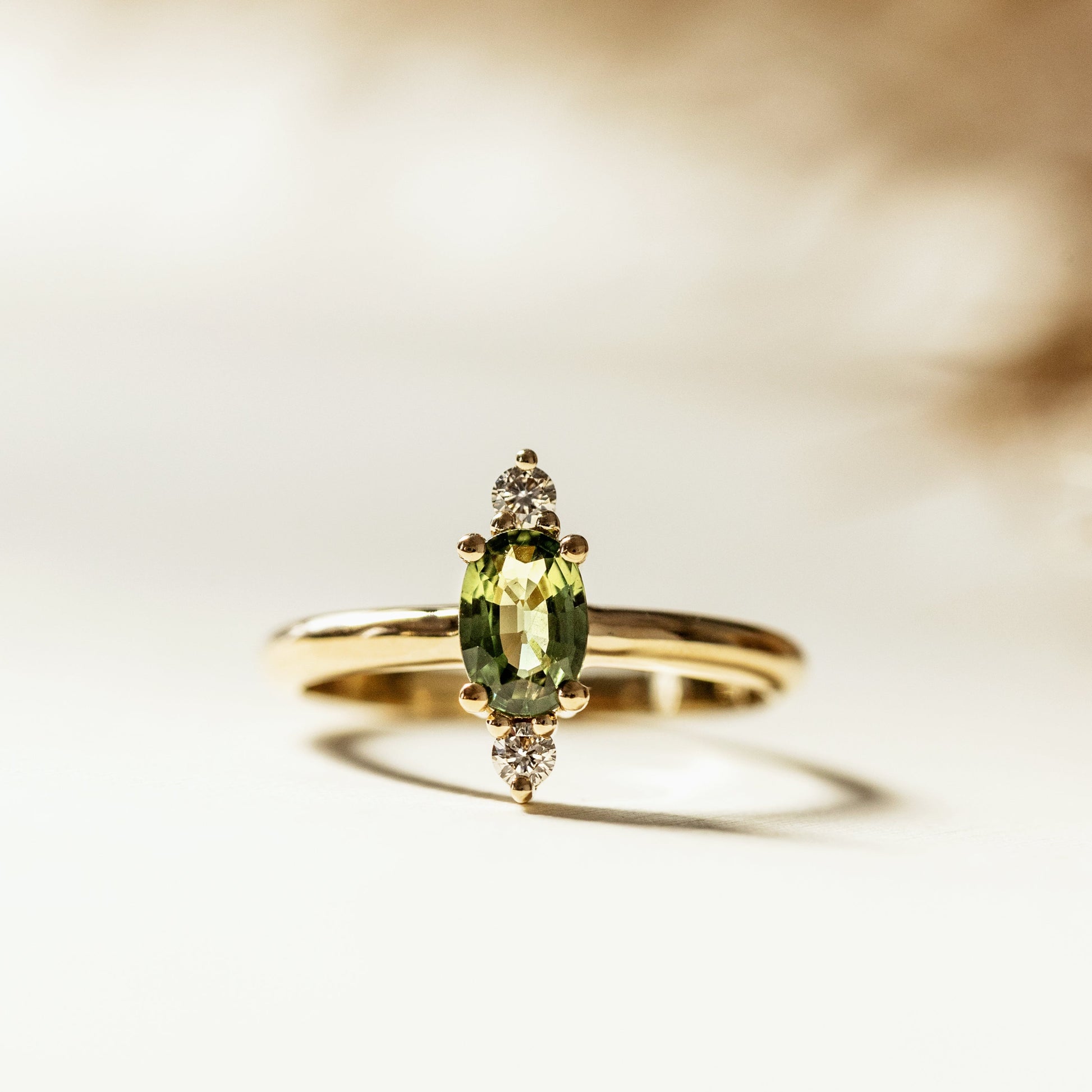 Embrace the refreshing elegance of our Natural Light Green Sapphire Ring.