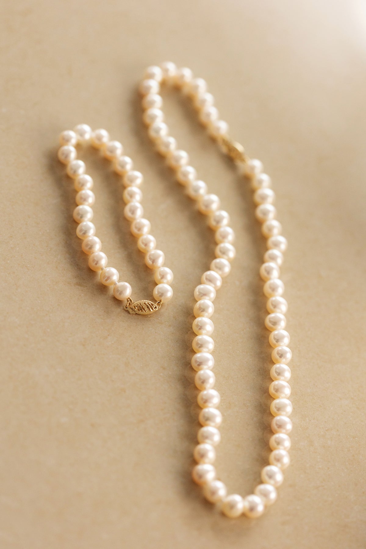 Timeless and classic, this pearl necklace and pearl bracelet make an excellent combo that will stand the test of time. Pearls have always been in fashion and will likely remain there. All of the pearls in this set have knots securing them in place. The knots are a flagship feature of any good strand of pearls. The knots will prevent all of the pearls from being scattered on the floor in the event the thread tears.