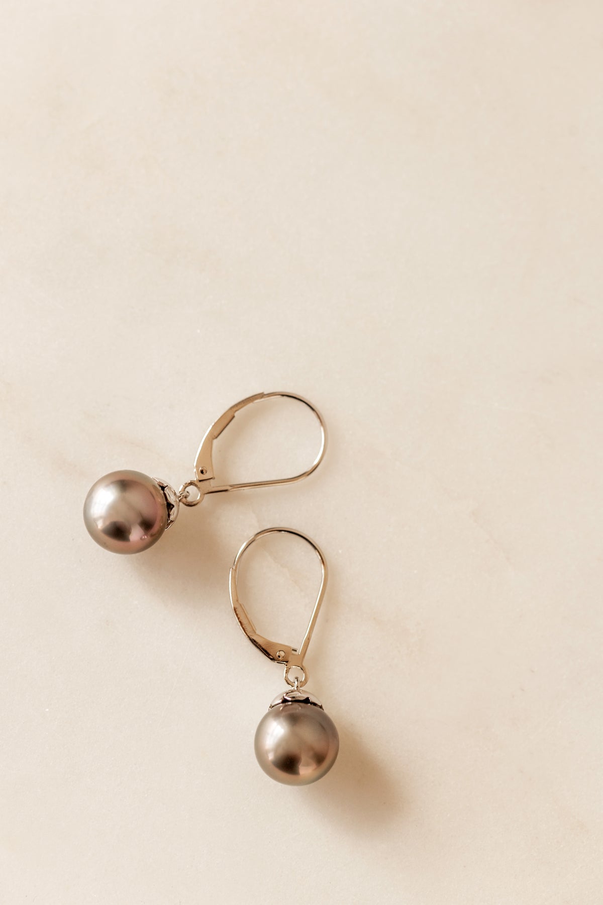 Discover the elegance of our high-quality 10mm Tahitian pearl dangling earrings, expertly set in luxurious 18-karat white gold. Each pearl boasts a perfectly round shape, showcasing the natural beauty and rich lustre that Tahitian pearls are renowned for.