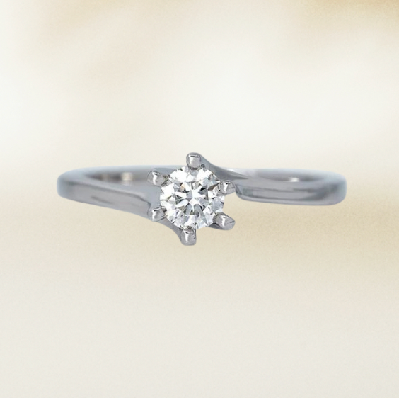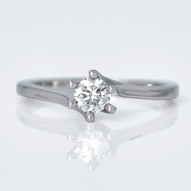 This engagement ring offers a timeless design featuring six prongs securing a natural brilliant-cut diamond. Elegant, yet sturdy is the main design philosophy for this engagement ring.