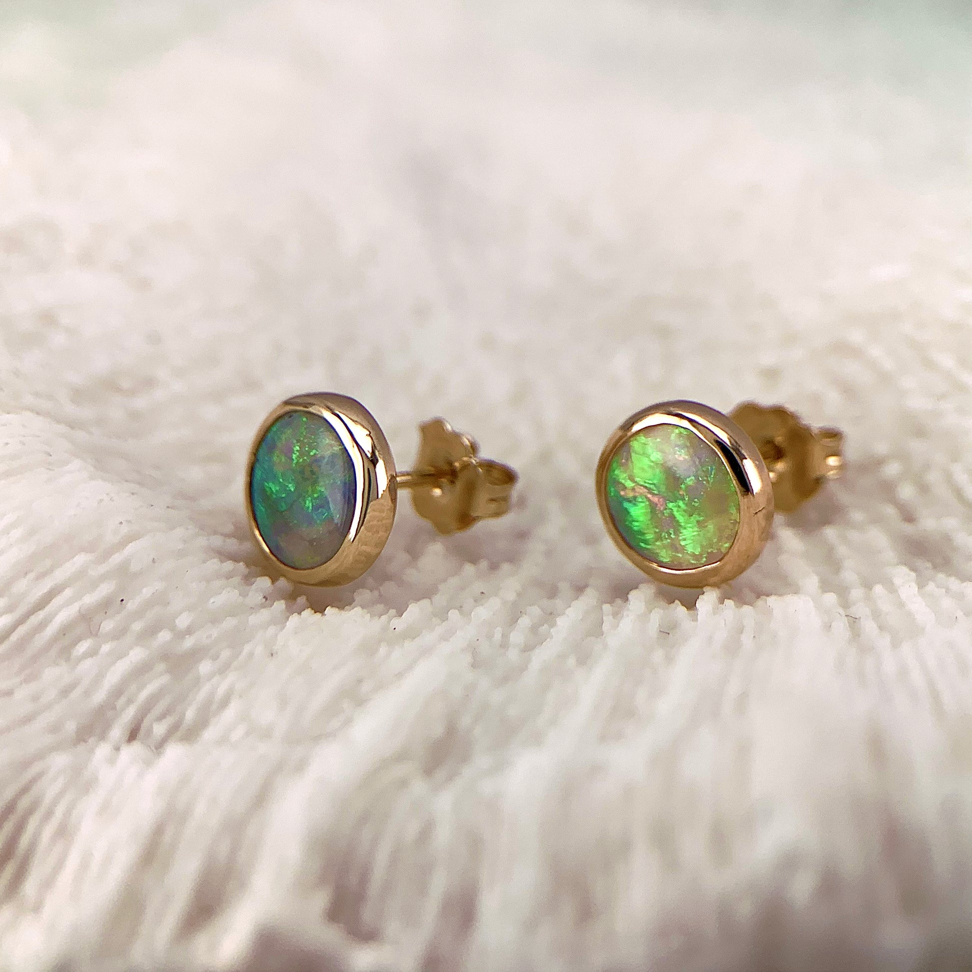 Round Australian Opal Gold Earrings