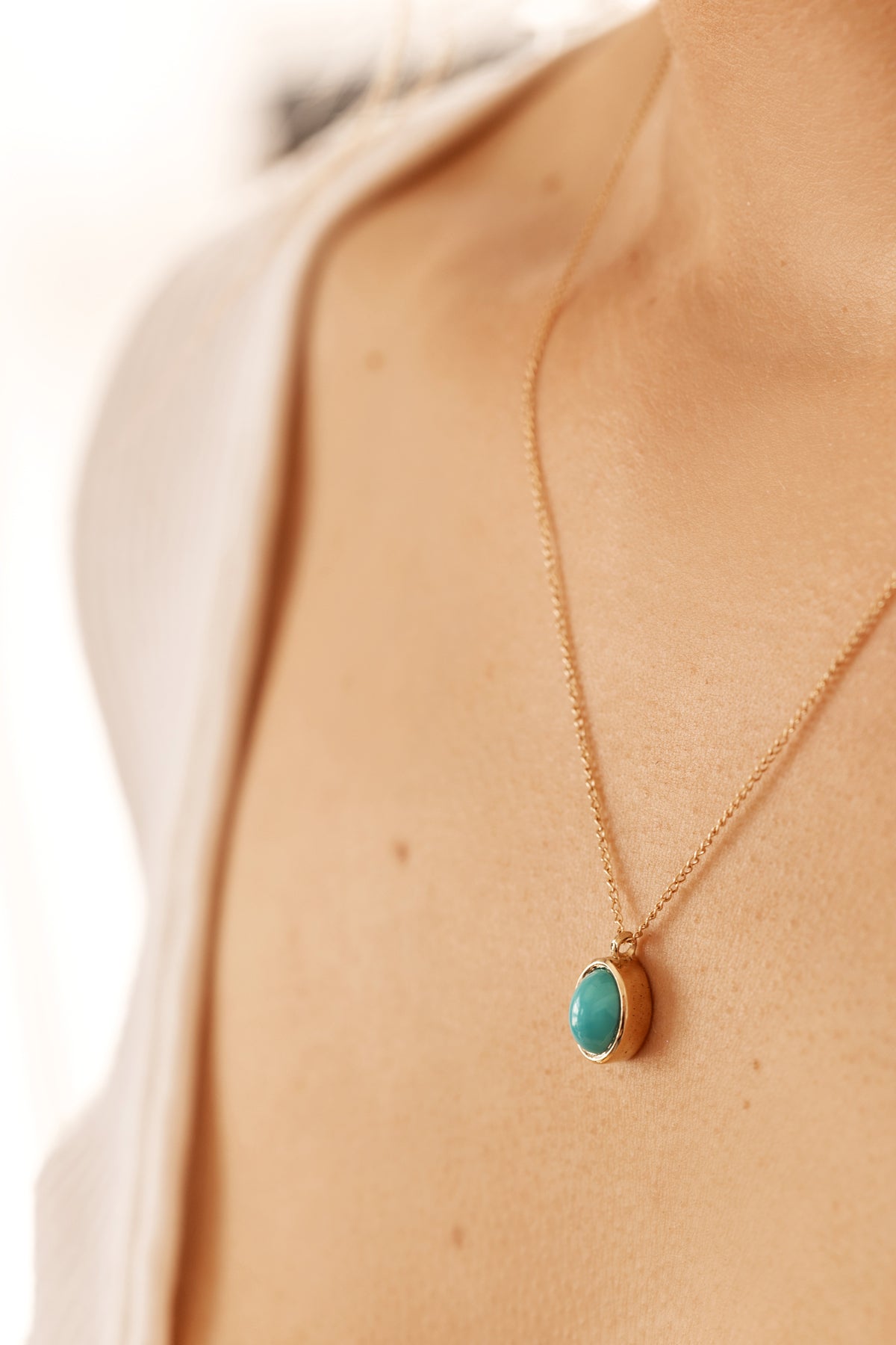 This captivating pendant features an oval cabochon natural turquoise, celebrated for its distinctive sky-blue to blue-green hue and unique matrix patterns. The turquoise is expertly bezel-set in a lustrous 10k yellow gold frame, accentuating its vibrant colour and adding a touch of timeless elegance. Suspended from a delicate 16-inch 10k gold fine cable chain, this pendant embodies both earthy charm and refined sophistication. The striking contrast between the turquoise's vivid tones and the warm glow of the gold creates a versatile piece, perfect for elevating both casual and formal attire. This pendant showcases exceptional craftsmanship and the natural beauty of turquoise, making it a prized addition to any jewellery collection. It's possible to add $100 to the price to change the gold-filled chain to a solid gold chain. Please get in touch with us to inquire about it.